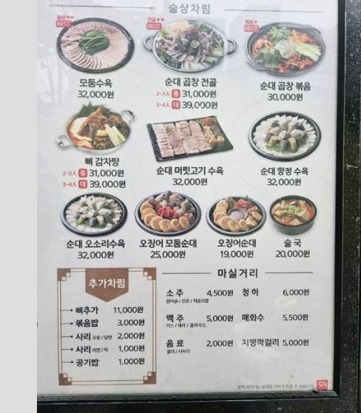 유명 프랜차이즈 가맹점 순대국 입니다