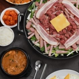 | 기교없는 재료 본연의 맛 송탄식부대찌개 묵은지 생삽겹살 경아식당 |